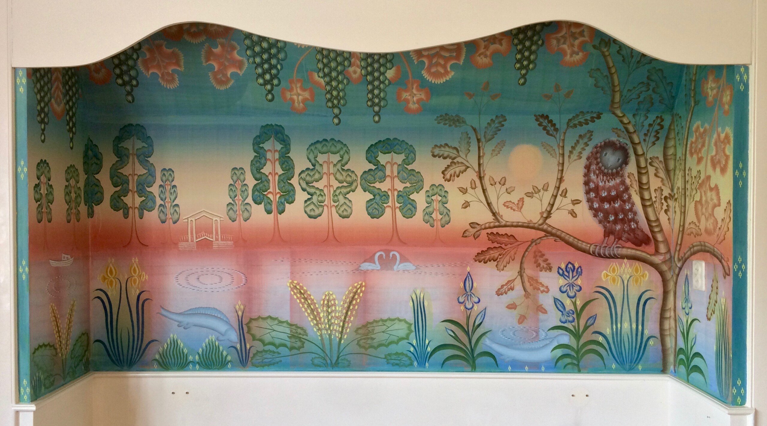 De laatste jaren wil ik dat ze een directe relatie met de ruimte aangaan. De schilderingen verhouden zich daarom steeds meer tot de plinten, deurposten en kozijnen van een ruimte. Het zijn ornamentele schilderingen van planten, dieren, kolommen en strikken die enerzijds de bestaande architectuur bevestigen en tegelijkertijd de gehele ruimte van sfeer veranderen.”