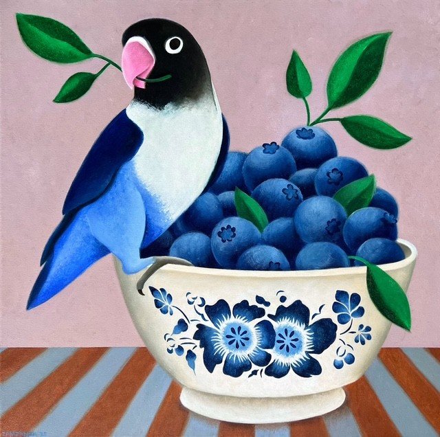 Haar inspiratie haalt ze overal vandaan. Zowel beroemde kunstenaars als Hendrik Werkman, Georgia O’Keeffe en David Hockney, maar ook de wereld om haar heen en afbeeldingen uit encyclopedieën dienen als inspiratiebron voor haar drukbevolkte schilderijen.